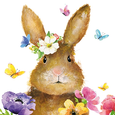 Nach der Eiersuche ist vor dem Osterfrühstück. Diese tolle Serviette mit dem naturgetreuen Hasen in einem Blumenmeer ist eine schöne Ergänzung auf dem Frühstückstisch zu Ostern. Die pastelligen und im Aquarellstil gemalten Farben sorgen für die richtige Frühlingsstimmung. Nicht nur Kinderaugen leuchten bei diesem Anblick. Wir sind ganz verliebt in diesen hübschen Osterhasen.