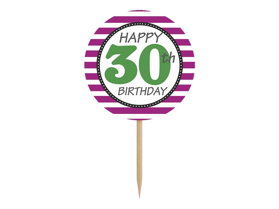 6 Cupcake Topper zum 30. Geburtstag, verschiedene Designs