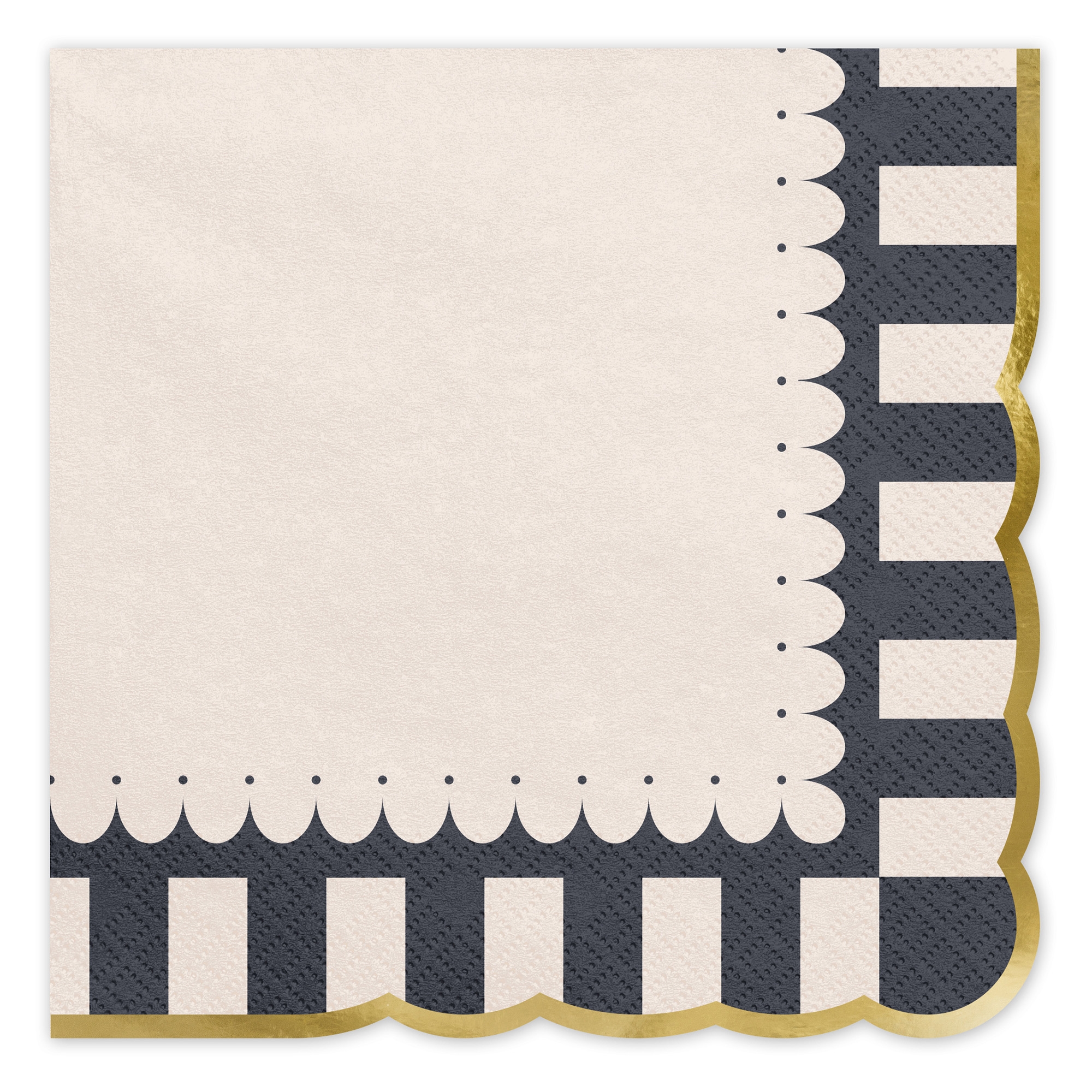 🖤 Halloween Servietten – Schwarz-Creme mit Goldrand (12 Stück) Elegant, stilvoll & ein bisschen spooky – diese Halloween-Servietten sind das perfekte Detail für deine festliche Tischdekoration! 🎃 Mit ihrem klassischen Schwarz-Creme-Streifenmuster, den verspielten Wellenrändern und dem edlen Goldrand verleihen sie jeder Party einen Hauch von Glamour. Ob für deine Halloween-Tafel, ein edles Dinner oder eine stylische Gruselparty – diese Servietten passen zu jedem Anlass, bei dem Stil und Spaß Hand in Hand gehen. Material: Papier Farbe: Creme, Schwarz, Gold Größe: 33 x 33 cm Packungsinhalt: 12 Servietten