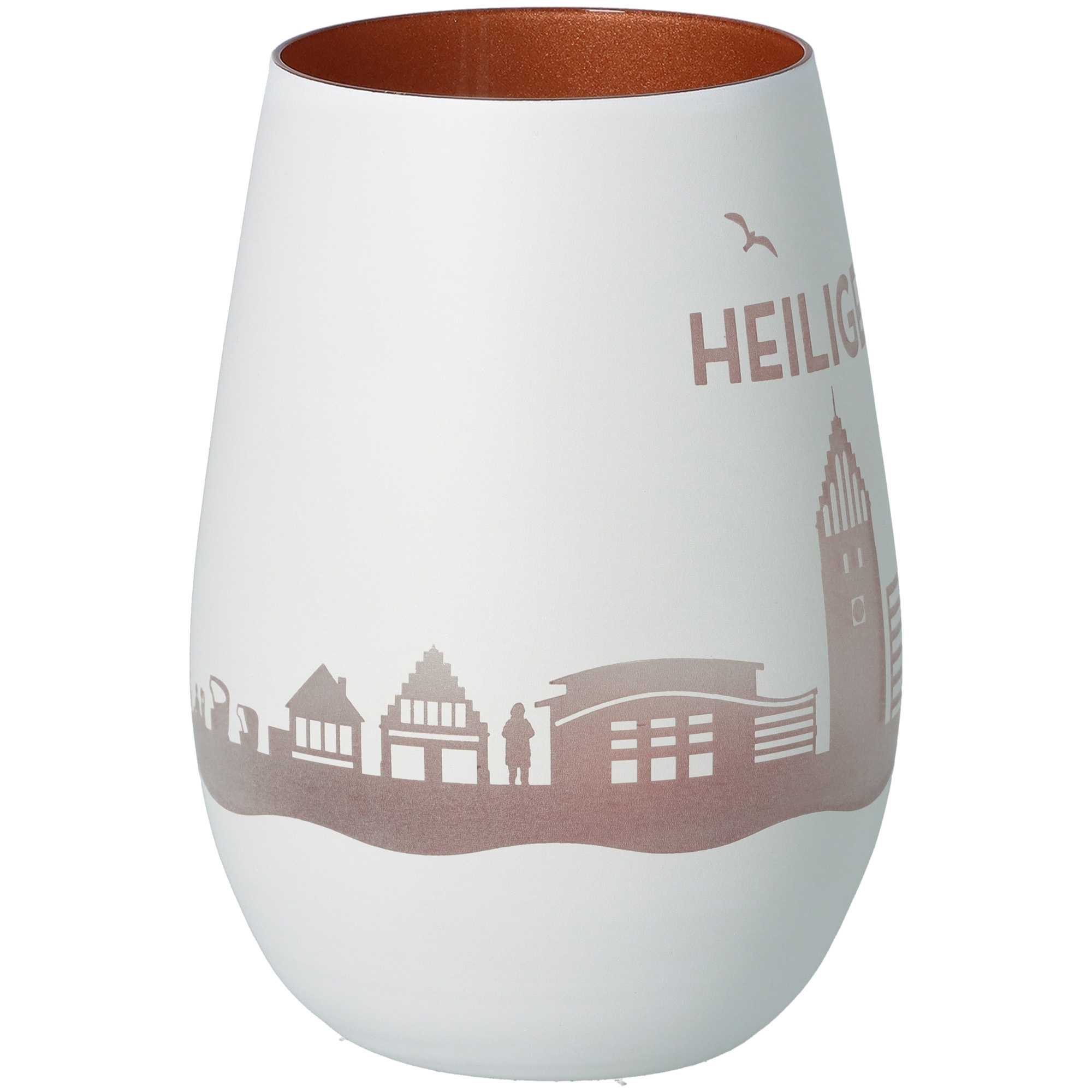 Die perfekte Geschenkidee ist unser Windlicht mit einer rundum Gravur von der Heiligenhafen Skyline, welche mit Kerzenlicht extra heraussticht.